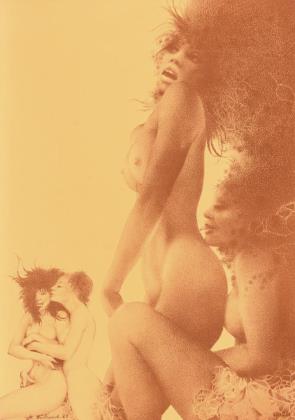 Werbeplakat mit erotischen weiblichen Akten für Studio 69 - Deutschlands erste Galerie für erotische Kunst