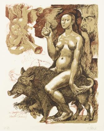 Italienische surrealistische Malerin: "Viele ihrer Werke [...] propagieren einen neuen, freizügigen Frauentypus [...] Ob Fini die Frau als hybride Göttin, Medusa, Freigeist oder weise Sphinx inszeniert – all ihre kriegerischen Heldinnen bestimmen über Leben und Tod. Diese „neuen Frauen“ gehen über das sonst übliche hierarchische Verhältnis von Meister und Muse hinaus und schwelgen in der Macht des Begehrens und der Fantasie." (Zitat: Alyce Mahon. In: Von Frauen, die die Welt regieren, April 2020, www.schirn.de)