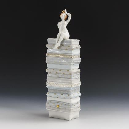 Gleichsam fallender Torso einer Frau mit offenen Ansätzen der Gliedmaßen