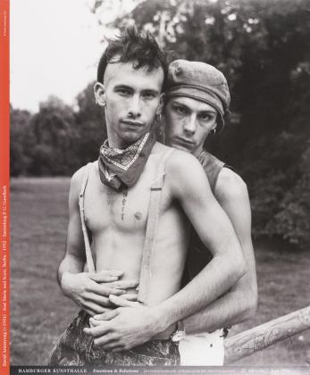 Ausstellungsplakat der Hamburger Kunsthalle zu "Emotions & Relations - Zeitgenössische amerikanische Photographie", 27. März bis 1. Juni 1998, Abbildung: José Marie und Scott, Berlin - Sammlung F. C. Gundlach