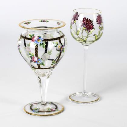 2 Kelchgläser mit Emailmalerei