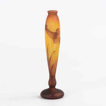 Schlankes Balusterväschen mit ausgestelltem Stand. Umlaufend eine geätzte Glockenblume
