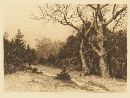 Das bekannte Waldstück mit Rotwild bei untergehender Sonne. Das Gemälde war Teil der Ausstellung "Künstler im Weserbergland und die Düsseldorfer Malerschule" vom 1.8. bis 1.11.2010 in Schloss Corvey sowie abgebildet im dazugehörigen Begleitkatalog S. 21