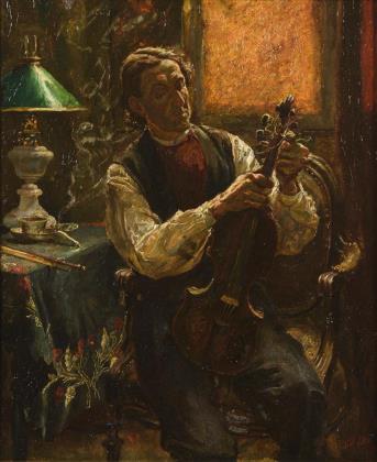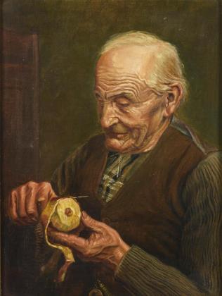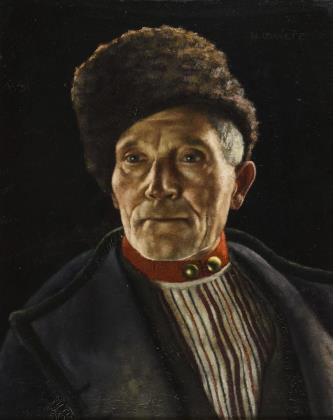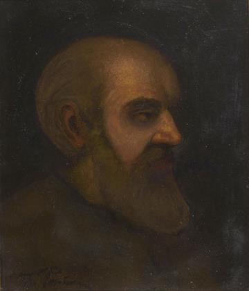 Profilbildnis eines älteren Mannes mit Bart vor dunklem Hintergrund