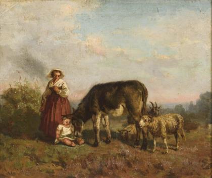 Monogrammist "WA": Bäuerliche Szene mit Esel und Familie