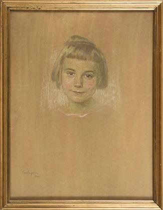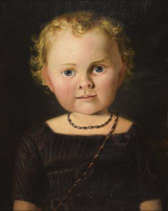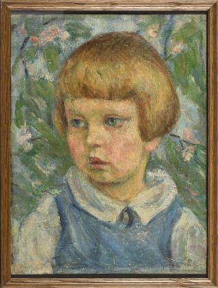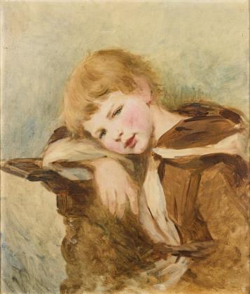 Bildnis eines Kindes mit hellem Haar, den Kopf auf den Arm gelegt