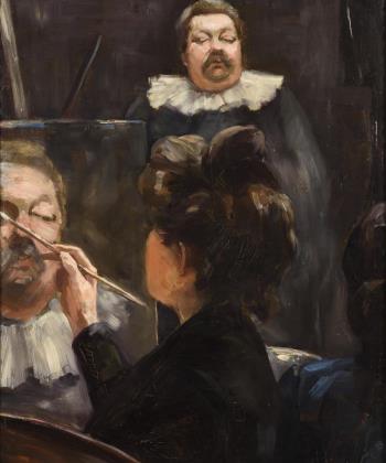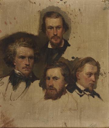 Malende Damen vor einem männlichen Modell mit Shakespearekrause