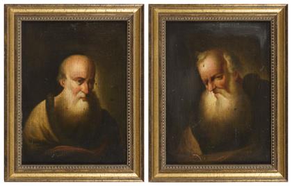Charakterbildnisse zweier alter Männer mit langen Bärten vor neutralem Hintergrund