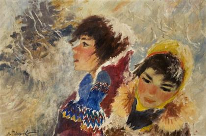 Eine ausgewogene Komposition mit gekonnter Linienführung und leichtem Pinselstrich in harmonischem Kolorit. Rückseitig kyrillischer Klebezettel. Silberrahmen