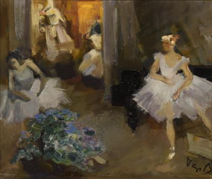 In Anlehnung an Edgar Degas gemalte Ballerinas hinter der Bühne
