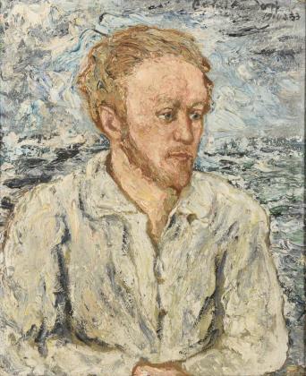 Expressives Porträt eines jungen Mannes im hellen Hemd vor dem Meer