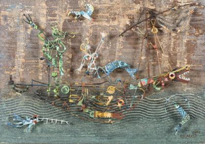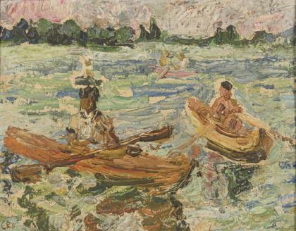 Pastos gemalte Seelandschaft mit den Booten auf dem Wasser