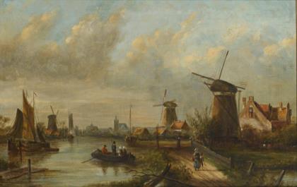 Die große Mühle mit Staffagefiguren im Sonnenschein