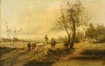 Unsigniert: Stimmungsvolle Abendlandschaft