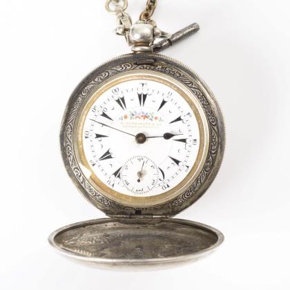 Silberne Savonnette mit silberner Uhrenkette für den osmanischen Markt