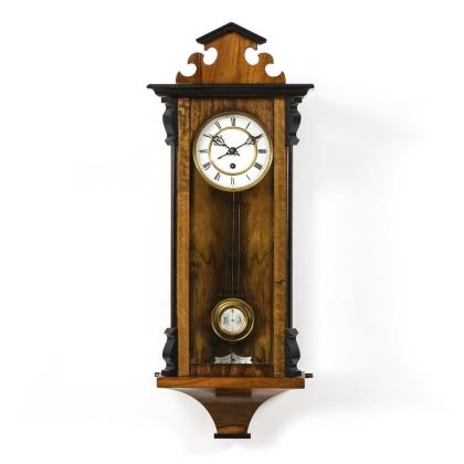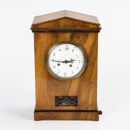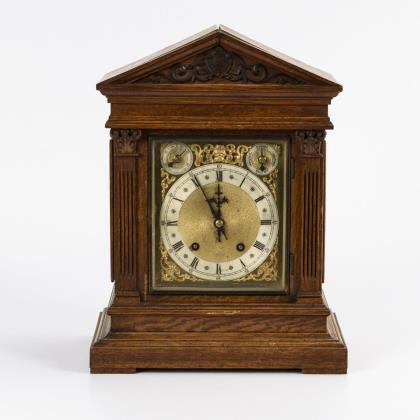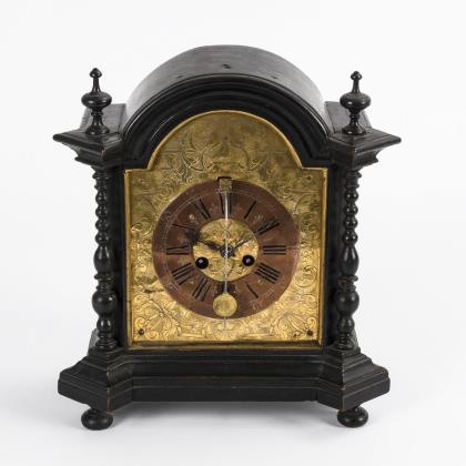 Stutzuhr mit Dreiecksgiebel und historistischem Dekor
