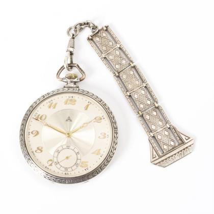 Silberne Art-déco-Frackuhr mit Châtelaine