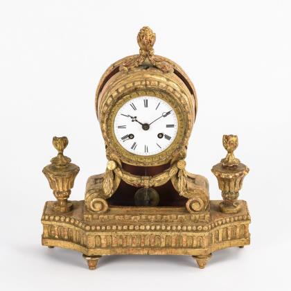 Pendule im Louis Seize-Stil mit seitlichen Vasen und Traubenbekrönung