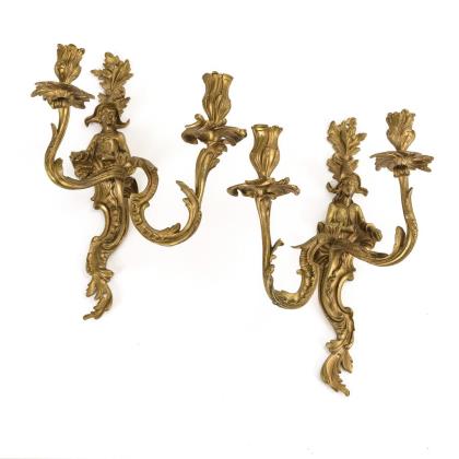 Paar 2-flammige Wandleuchter im Rokoko-Stil mit Asiatenfiguren