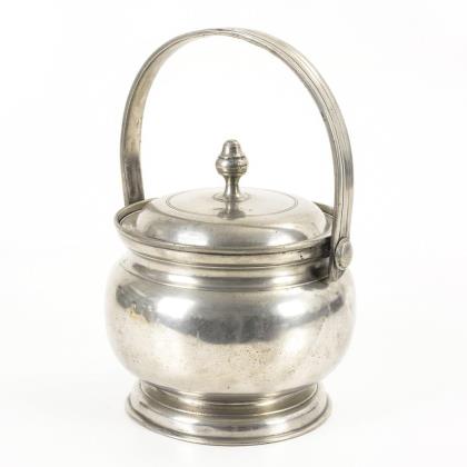 Dreibein mit Löwenfüßen auf der Rundplinthe, vegetabil reliefierte Beine mit applizierten Engelsköpfen und Kreuzstreben sowie halbrunde Räucherschale