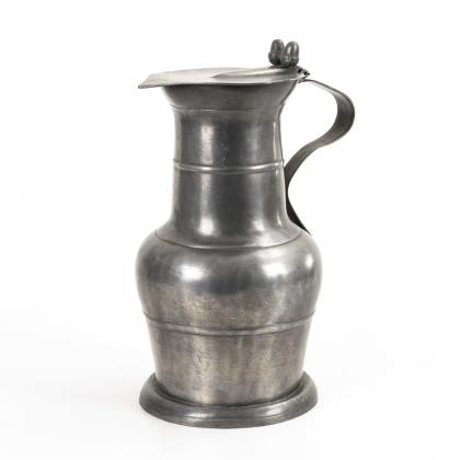 Hexagonaler Fuß, schlanker Balusterschaft und Vasentülle über Tropfschale
