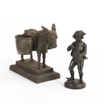 Lastesel mit 2 Körben als Fidibushalter bzw. Musiker mit Geige und Dreispitz