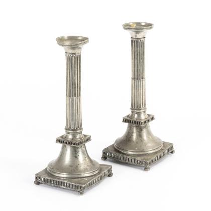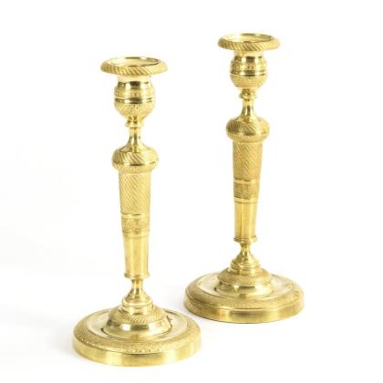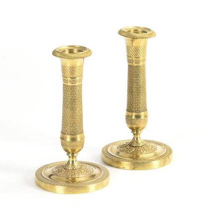 Mit feinen Friesen und geriffeltem Schaft verzierte Leuchter