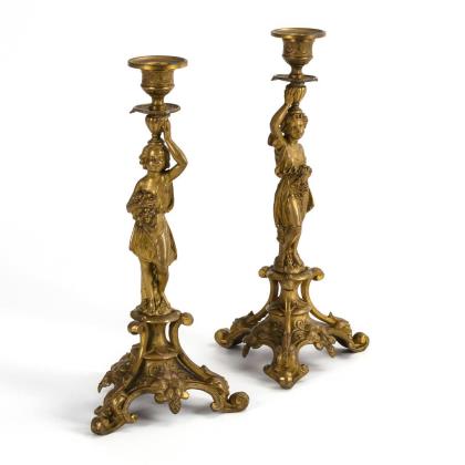 Figurenleuchter mit vollplastischen Mädchenfiguren, die Blumen tragen