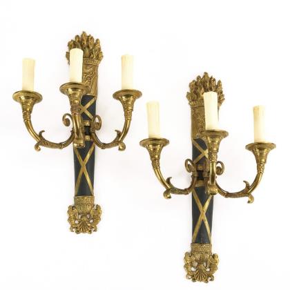 Paar 3-flammige Wandleuchter im Empire-Stil