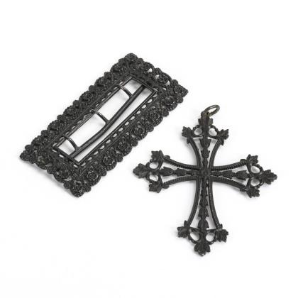 Kreuzanhänger und Gürtelschnalle Eisenguss