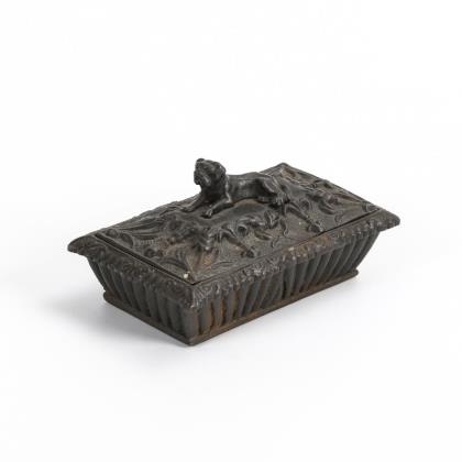 Seltene kleine Eisenguss-Streichholzdose mit Hund