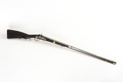 Aptierte Waffe. Lauf in der hinteren Hälfte achteckig, gestempelt mit sieben unterschiedlich verteilten Rauten und zwei eingelegte Marken, davon eine unkenntlich. Ladestock vorhanden