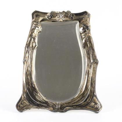 Geschwungener Rahmen mit Aufsteller sowie 2 Frauen-Relieffiguren