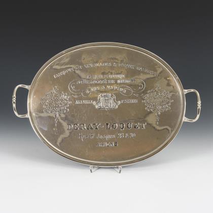 Seltenes Werbetablett mit geprägter Aufschrift einer Limonaden- und Sirup-Fabrik in Amiens "Deray-Loquet"