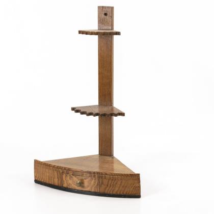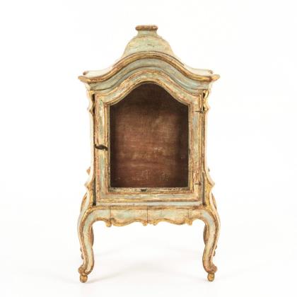 Auf pyramidaler Konsole 3-seitig verglaster Schrankkorpus mit Schinkeldach-Bekrönung