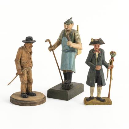 Brautwerber im Biedermeier-Kostüm, Handwerker mit Kraxe und Wanderer mit Rucksack. Teils wohl Lausitz