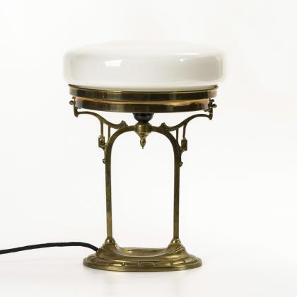 Jugendstil-Tischlampe mit weißem Glasschirm