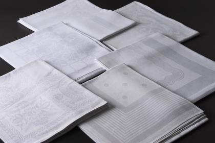 Tücher mit floralen und geometrischen Dekoren. Gestickte Monogramme SD