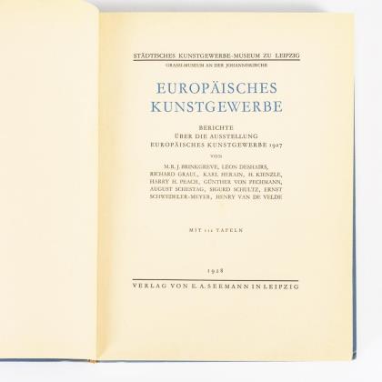 115 Seiten mit Abbildungen von Erzeugnissen der Werkstätten, vier in Farbe. Gelber Leineneinband mit roter Schrift