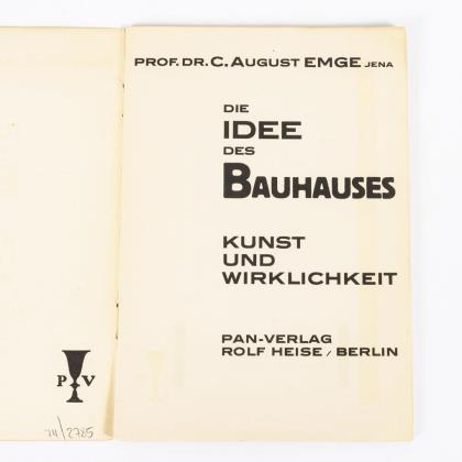 2. Auflage. "Ursprüngliche Grundlage zu einem Teil des theoretischen Unterrichtes am staatlichen Bauhaus zu Weimar". 51 Seiten. Im nachträglichen Kunstledereinband