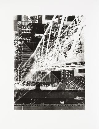 1 von 8 Abbildungen der im Jahr 1928 entstandenen Fotografien "Blick vom Berliner Funkturm". Diese Folge gilt als fotografisches Hauptwerk des Künstlers, deren neue ästhetische Bildsprache durch zeittypisch steile Perspektiven im experimentellen Umgang mit Licht und Form von Präzision und Sachlichkeit geprägt ist