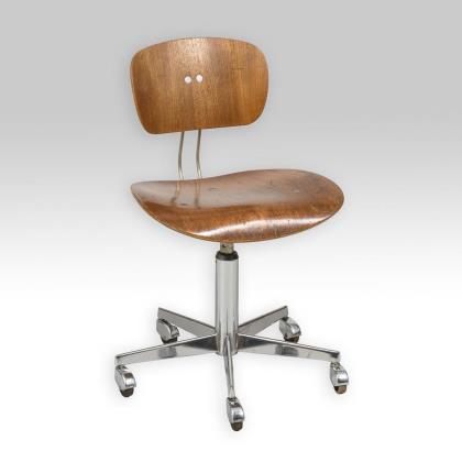 Anatomisch angepasster Architektenstuhl im Bauhaus-Design mit Fußkreuz und Schwenkrollen sowie höhenverstellbarer, gefederter Rückenlehne und Sitzfläche