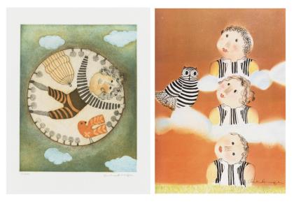 "Engel und Eule", Farboffsetdruck, Blatt: 58 x 41 cm | "La Cage et L'oiseau", Farbradierung auf Bütten, Bleistiftsignatur, Platte: 37,5 x 29,5 cm, Blatt: 75 x 56 cm, Exemplar: VI/LXXV