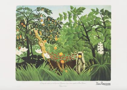 Bezeichnet "Lithographie réaliseé par les Imprimeries Parisiennes, d'après l'œuvre originale de Henri Rousseau "Paysage Exotique"