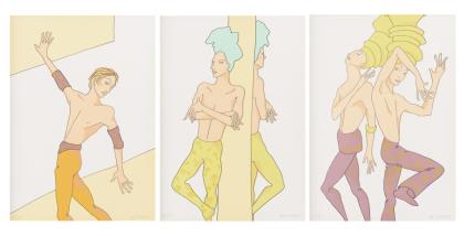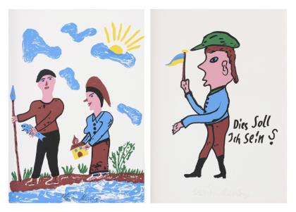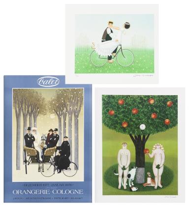 Hochzeitspaar auf Fahrrad, Blatt: 36,5 x 44,5 cm, Stempelsignatur, Ecken oben links und unten rechts minimal geknickt | Adam und Eva, Blatt: 70,5 x 55,7 cm, Stempelsignatur, Exemplar: 336/1000 | Plakat: "Balet" - Dezember 1977 - Januar 1978 Orangerie Cologne, Edition Mathieu Lith Zürich, Farboffsetdruck, Stiftsignatur, Blatt: 87 x 60 cm