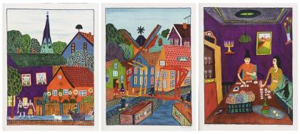 4 verschiedene naive Werke.