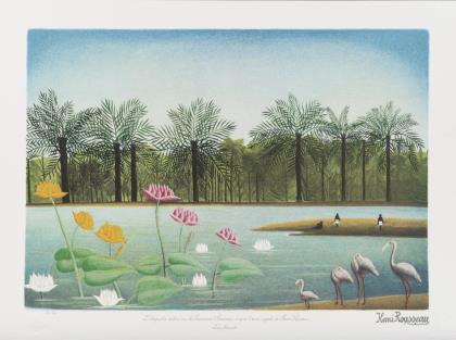 Bezeichnet "Lithographie réaliseé par les Imprimeries Parisiennes, d'après l'œuvre originale de Henri Rousseau "Les flamants"