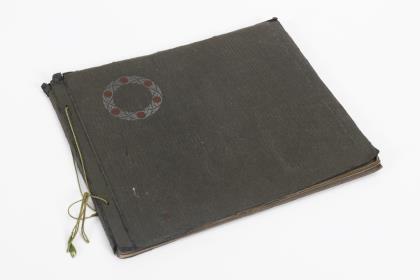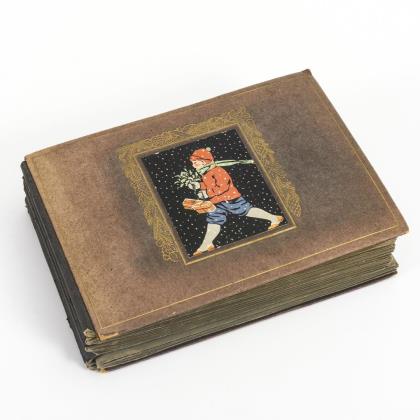 21 fotografische Vervielfältigungen von ursprünglichen Lithographien, darunter ein Porträt des Künstlers. Mit vielfigurigen Genre-Zeichnungen. In einer Art Fotoalbum mit Jugendstil-Einband geklebt