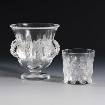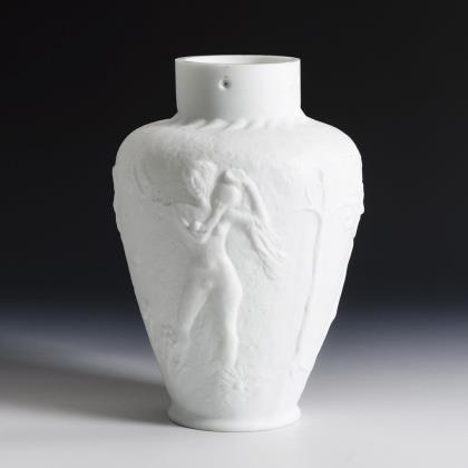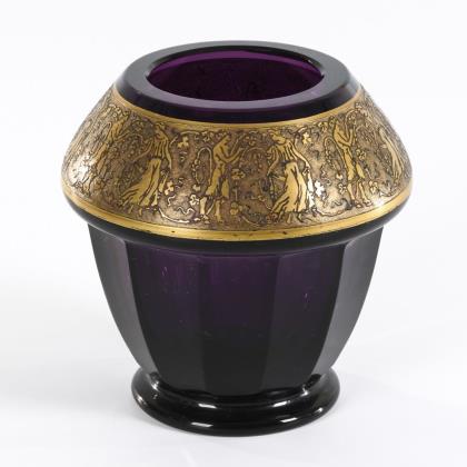 Zwölffach facettierte Vase mit einem oroplastischen Dekorband (Bacchantenfries)
