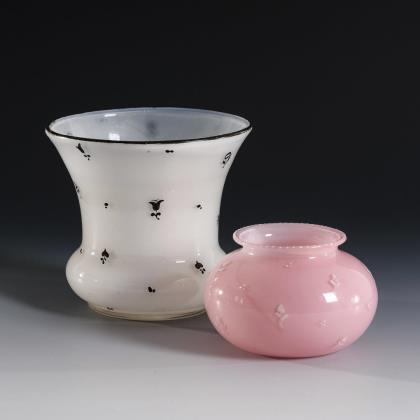 Kratervase und gedrückte Kugelvase, beide mit ausgekugeltem Abriss und stilisiertem Streublümchendekor